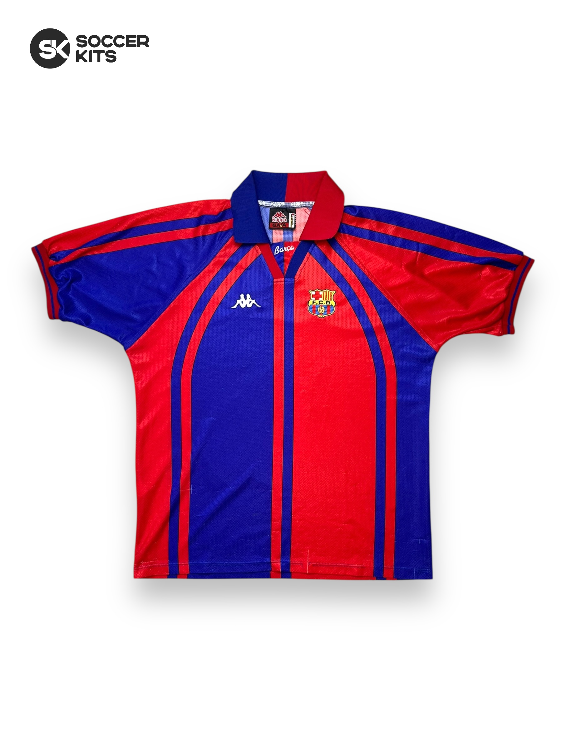 - Fornecedora: Kappa - Costas: #11 Rivaldo - Condição: 8,5/10 (fio puxado nas costas) - Tamanhos: G - Medidas: 73x58 - Detalhes: Etiquetas internas presentes, versão importada. Camisa rara do clube, modelo utilizado apenas na Supercopa da UEFA naquela temporada, não sendo comercializada em território brasileiro. Camisa em muito boa conservação, sem bolinhas no tecido, desgastes na personalização ou avarias nas cores, apenas um fio puxado pontual nas costas.