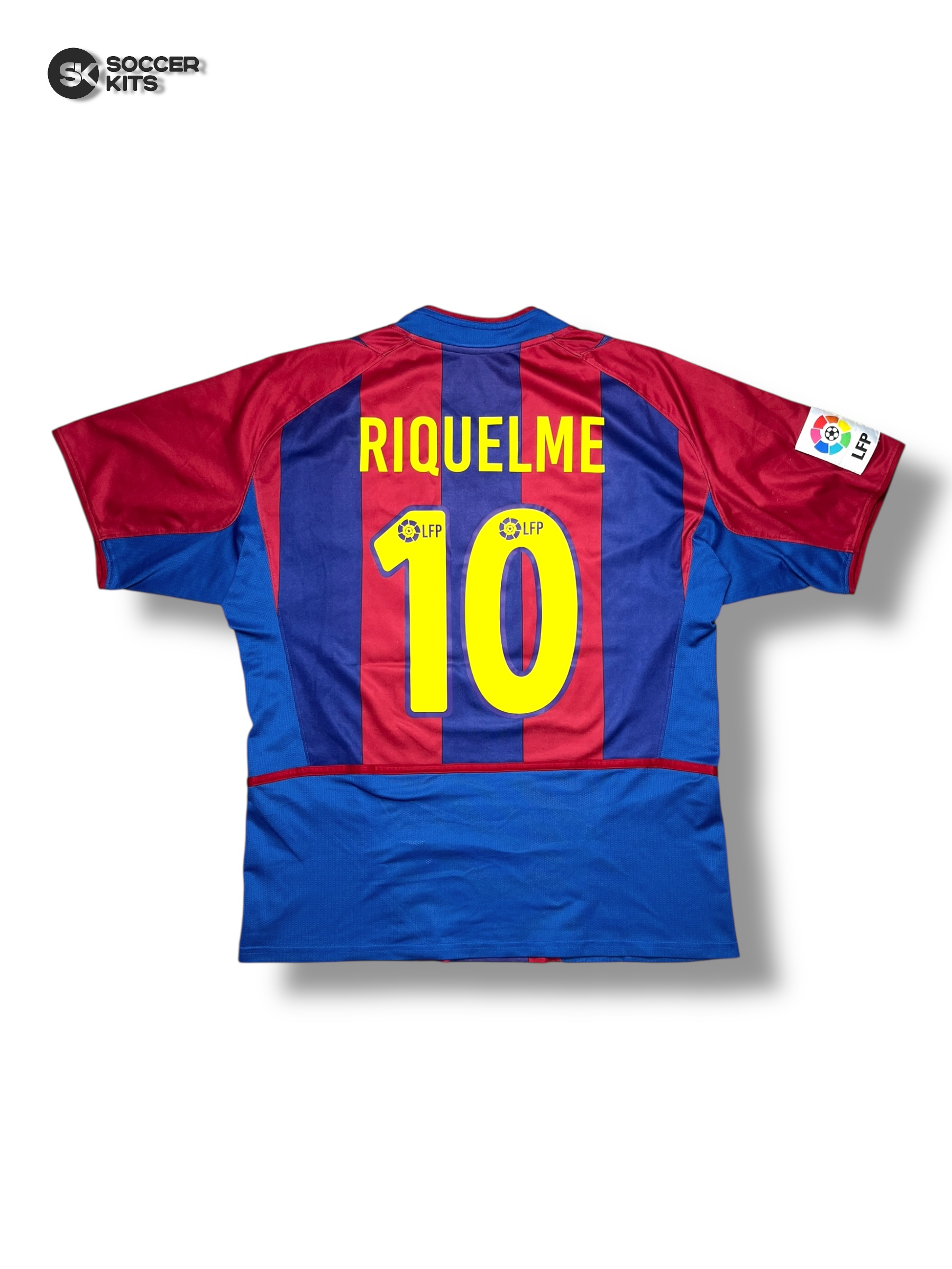 - Fornecedora: Nike - Costas: #10 Riquelme - Condição: 9/10 - Tamanhos: G - Medidas: 73x58 - Detalhes: Etiquetas internas presentes, versão nacional. Camisa rara no mercado, modelo utilizado pelo craque Agentino em sua chegada ao clube, onde ja estreou com a tão pesada 10 do Barcelona. Conservação impecável, sem avarias no tecido ou na personlização.