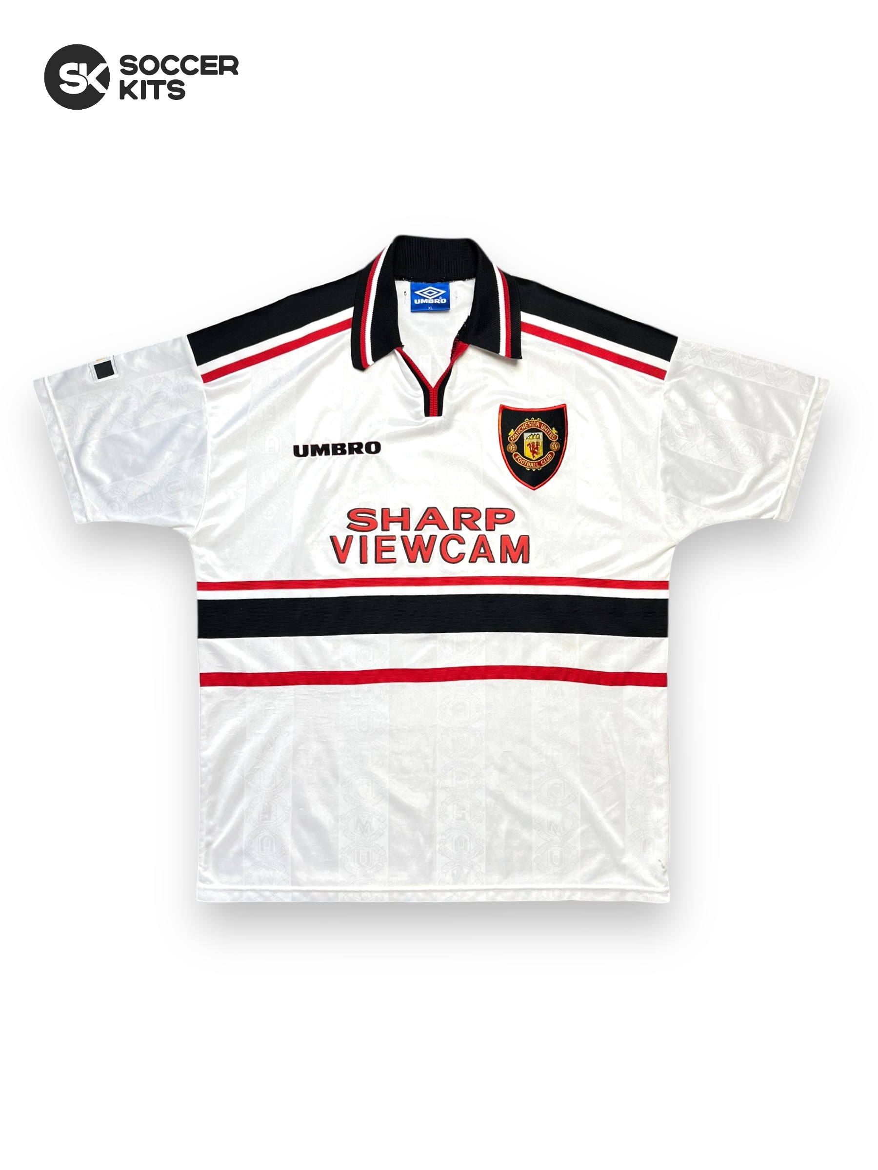 - Fornecedora: Umbro - Costas: #7 Beckham - Condição: 9/10 - Tamanhos: GG - Medidas: 79x59 - Detalhes: Etiquetas internas presentes, versão europeia. Modelo incrivel do clube, principalmente por se tratar de uma versão produzida na gringa, com tecido encorpado e patrocínio aveludado. Excelente conservação de tecido, sem bolinhas ou fios puxados. Personalização do jovem craque David Beckham em veludo, sem avarias.